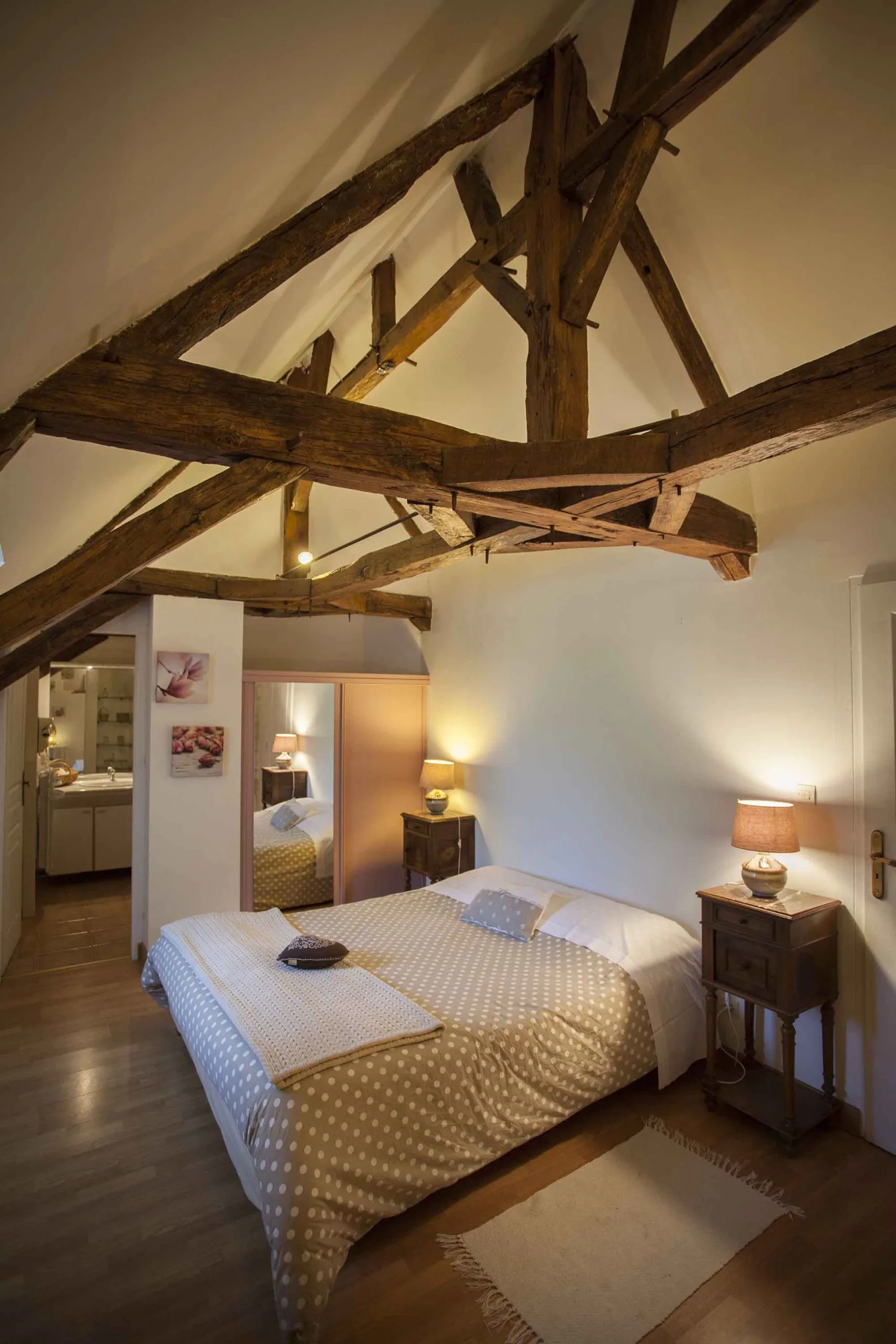 La chambre d’hôtes Conférence peut accueillir de 2 à 3 personnes. Elle est mansardée et elle est composée de 2 lits (1 lit double et un lit simple). C’est la chambre idéale pour un couple avec ou sans enfant.