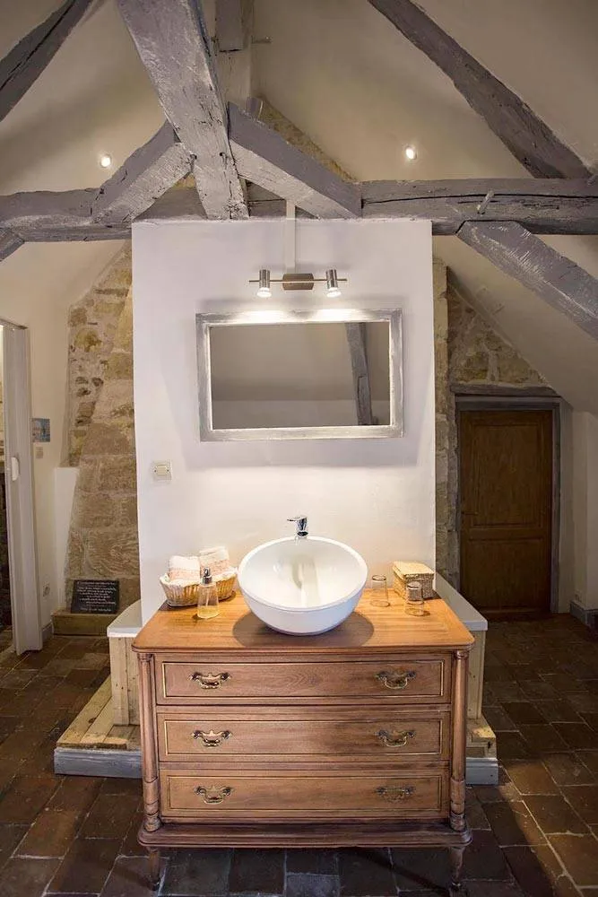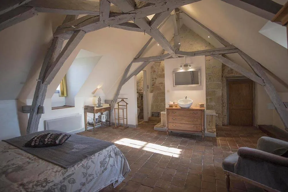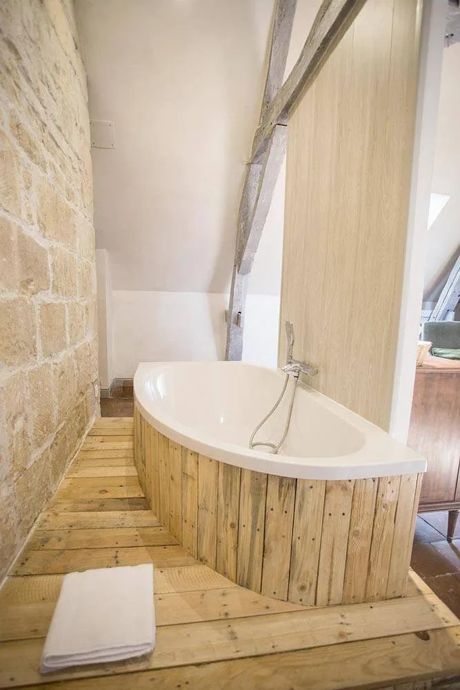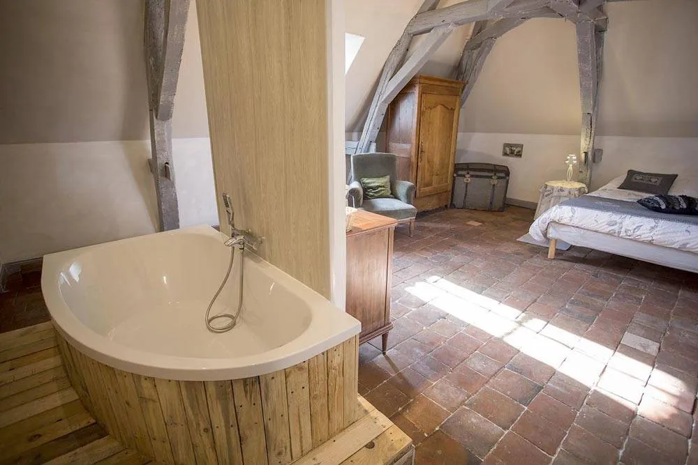 Profitez de la baignoire installée dans la salle de bain ouverte pour un cadre romantique et bucolique. La chambre Golden est accessible à partir de 89€ / nuit pour deux personnes.